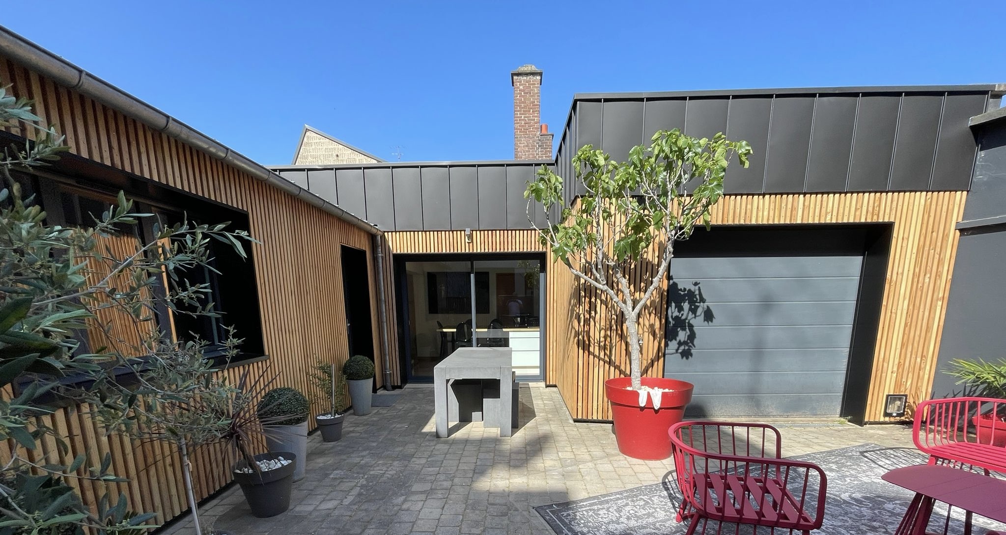 En 2016, Homiso a réalisé une isolation thermique par l’extérieur en bardage sur une extension de maison située à Saint-Pierre-de-Varengeville.