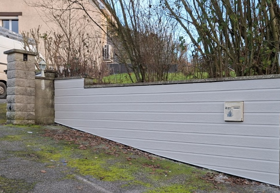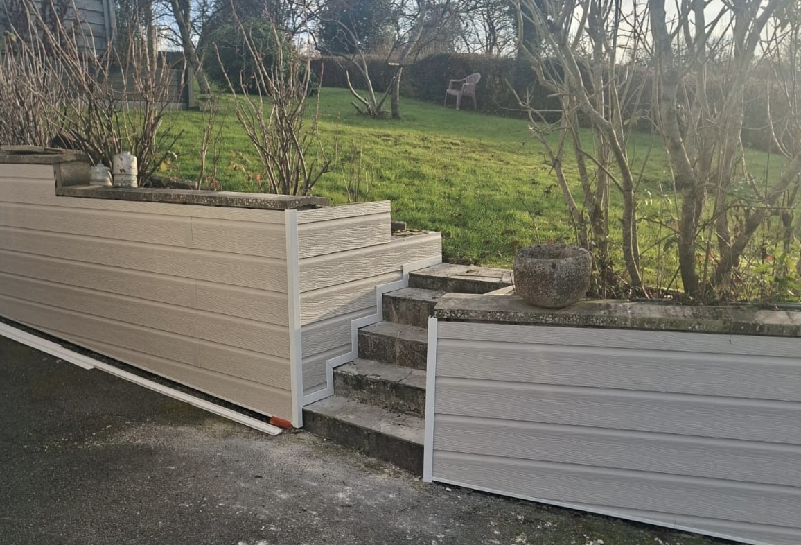 Protection d'un muret existant grâce à un habillage extérieur soigné, apportant une finition moderne et harmonieuse aux abords de l’habitation.