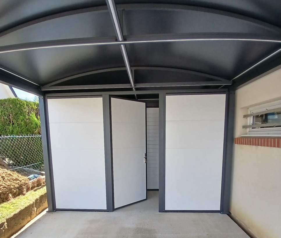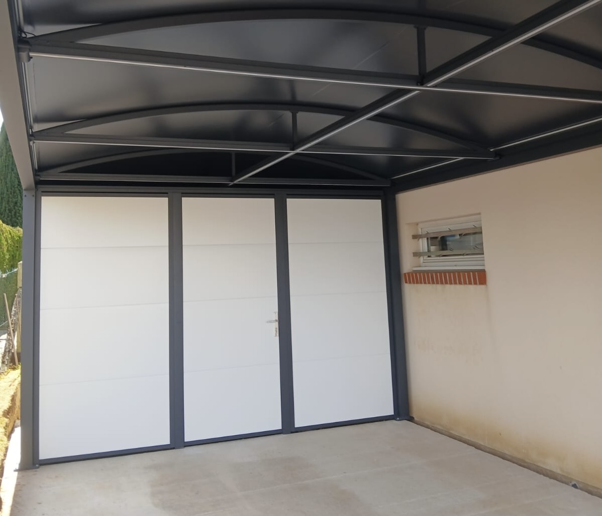 HOMISO a préconisé l’installation d’un carport aluminium thermolaqué, conçu sur-mesure, avec une structure robuste et des panneaux latéraux de fermeture pour un meilleur confort d’usage.