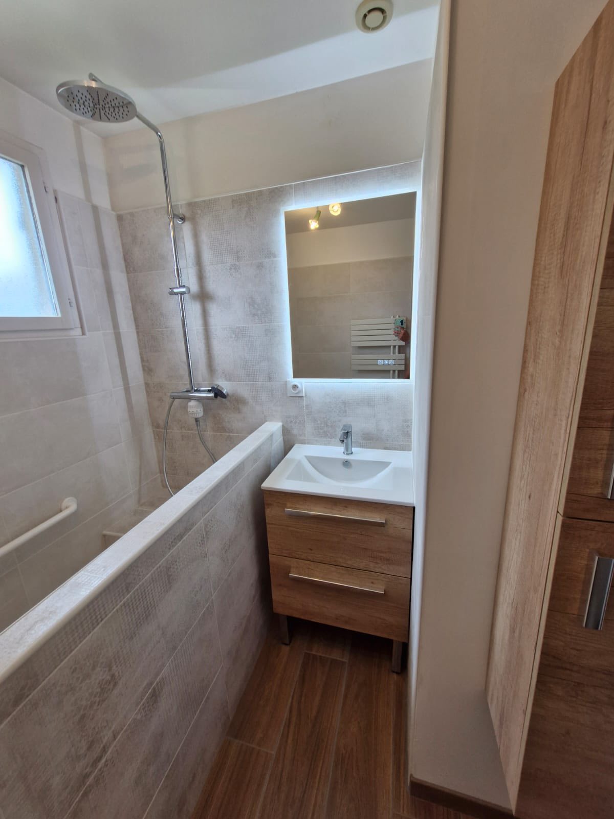 Cette rénovation permet désormais à nos clients de bénéficier d’une salle de bain modernisée, plus accessible et plus sécurisée, grâce à une douche senior adaptée.