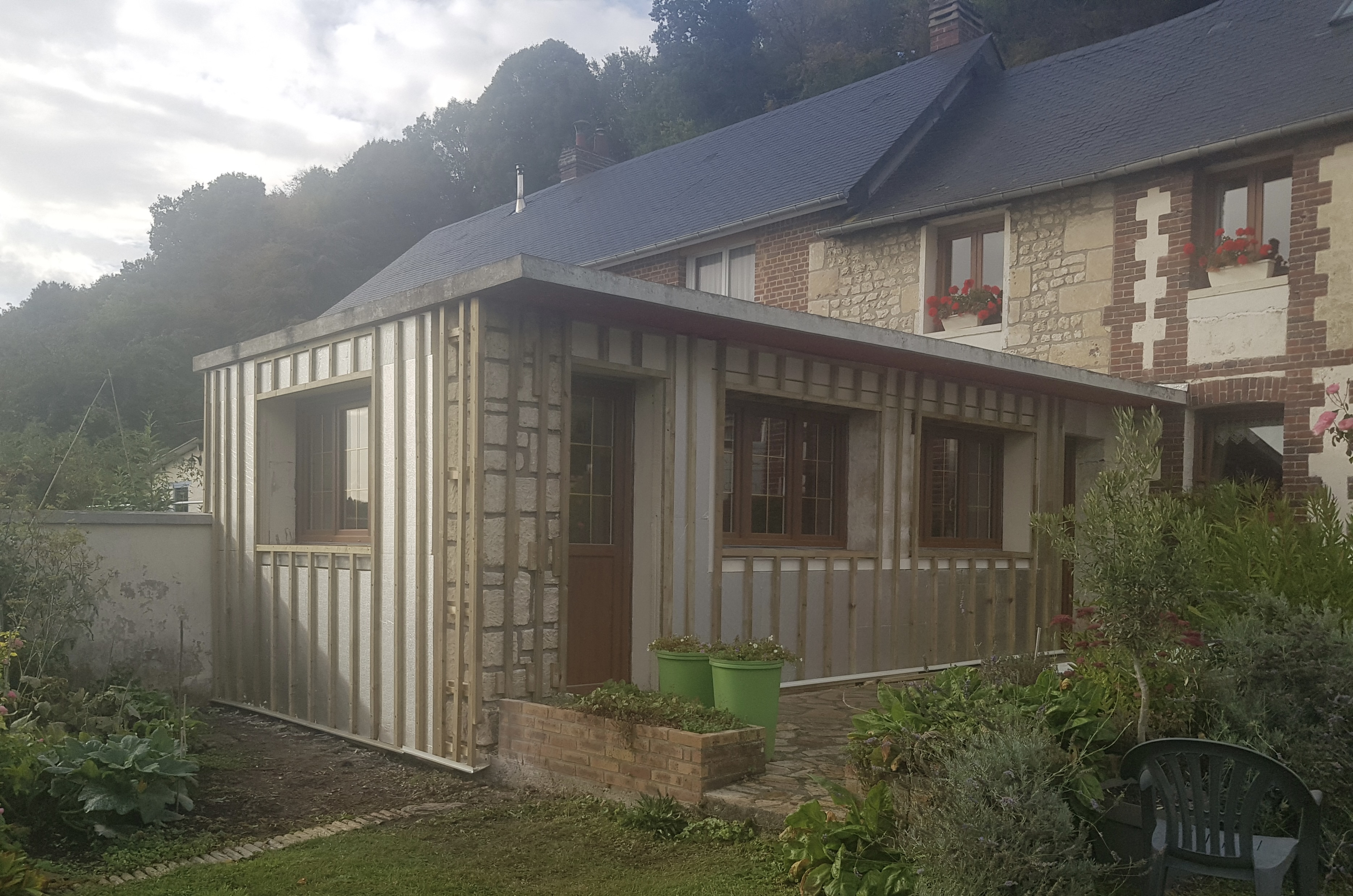 L’extension présentait des murs peu isolés, générant des pertes de chaleur importantes et un inconfort thermique, notamment en hiver.