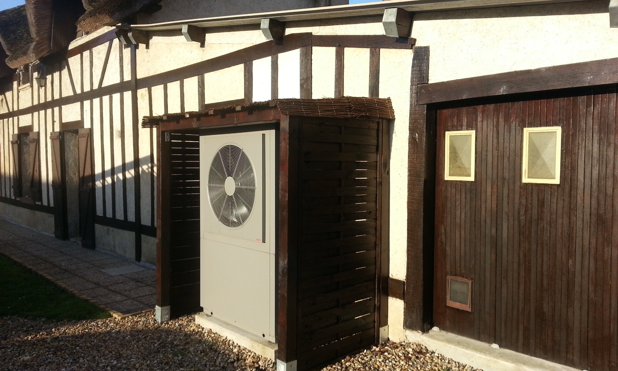 Dans le cadre d’un projet de rénovation énergétique, installation d’une pompe à chaleur pour une longère à Elbeuf en remplacement d'une chaudière fioul.